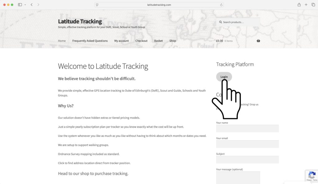 This can be reached from Tracking Platform Access or via the button on our home screen shown below