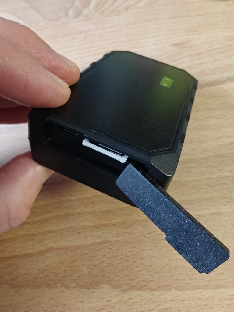 The tracker will power up. This is shown by the blue light on the top of the unit.